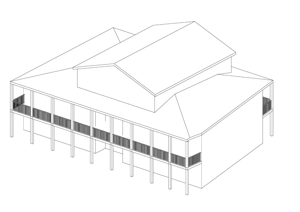 Une maison remarquable à proximité nous interpelle. Elle est décollée du sol, entourée d’un balcon, protégée par un toit à quatre pans, un