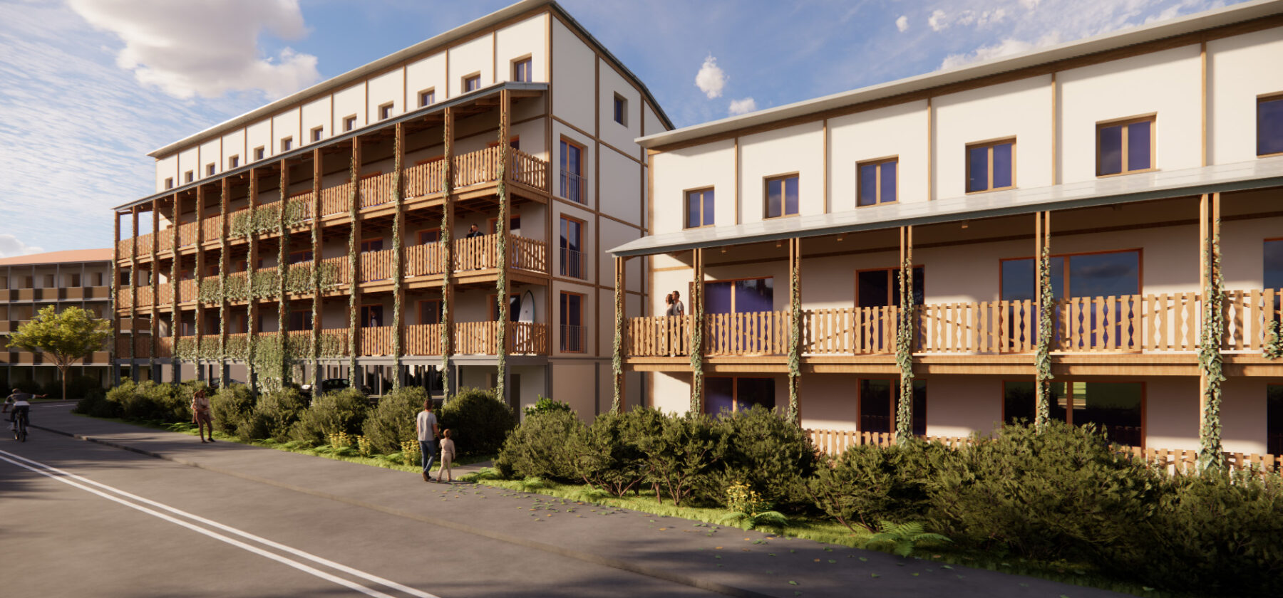 Une attention particulière est prêtée aux modes constructifs, à l’enveloppe, au confort thermique, à la qualité des matériaux. Le projet prévoit l’utilisation de matériaux biosourcés et géosourcés : façades à ossature bois, séparatifs en terre crue entre logements..