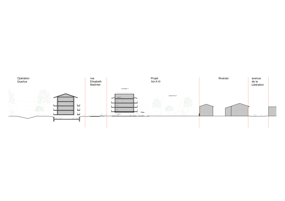 La réussite du projet passe par la continuité du travail de plan masse dans la ZAC, et par la réflexion sur l’échelle, les hauteurs et les gabarits, l’ensoleillement et les ombres portées, les orientations, le traitement des espaces libres, pour ainsi venir s’intégrer au tissu urbain  tout en poursuivant le travail sur le végétal et le paysage entamé sur les lots voisins.