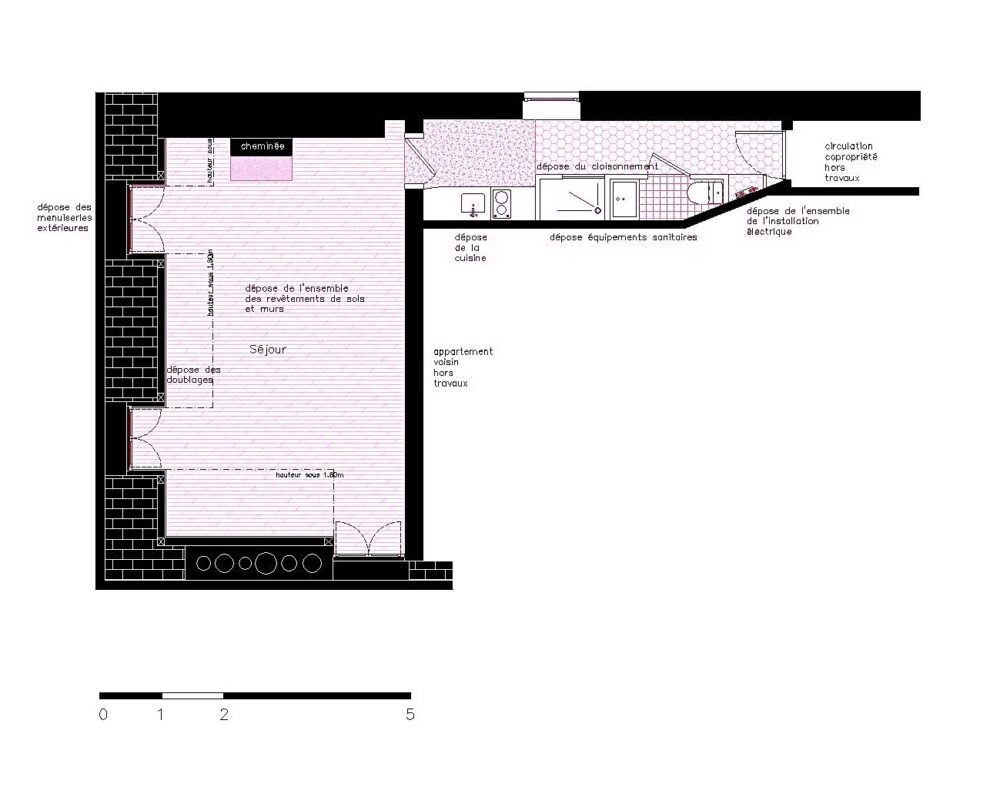 Transformation d’un appartement, rénovation énergétique, dessin de mobilier sur mesure.